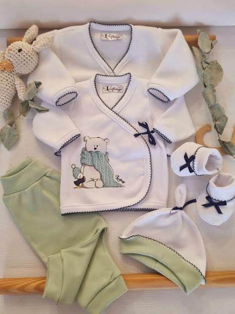 Contiene batita, pantalon, gorro y escarpin.