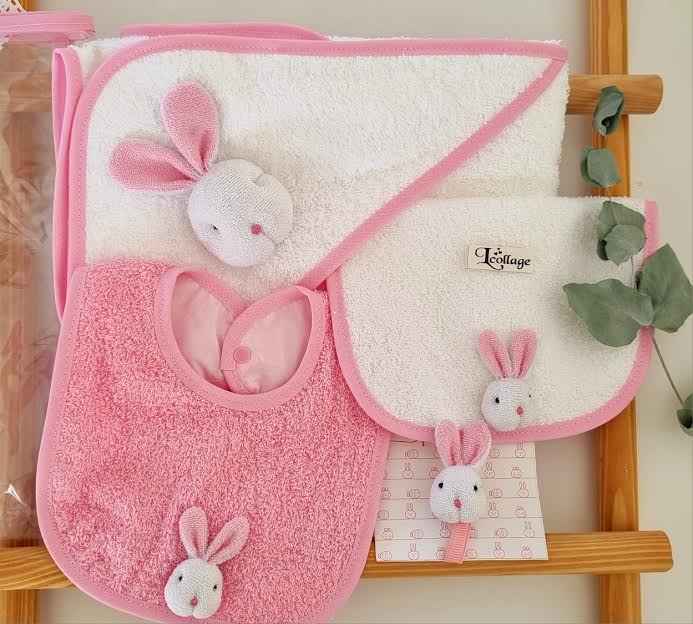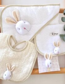 Contiene: Babero toalla, babita toalla y porta chupete Conejo